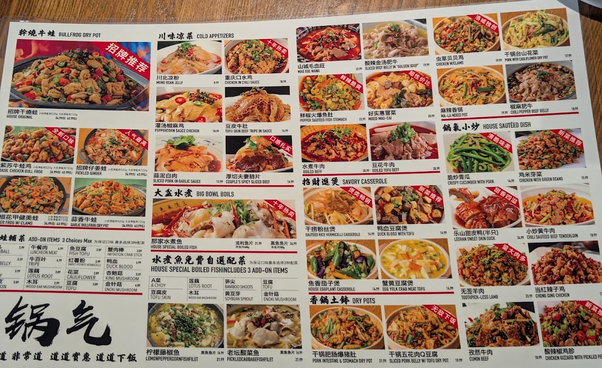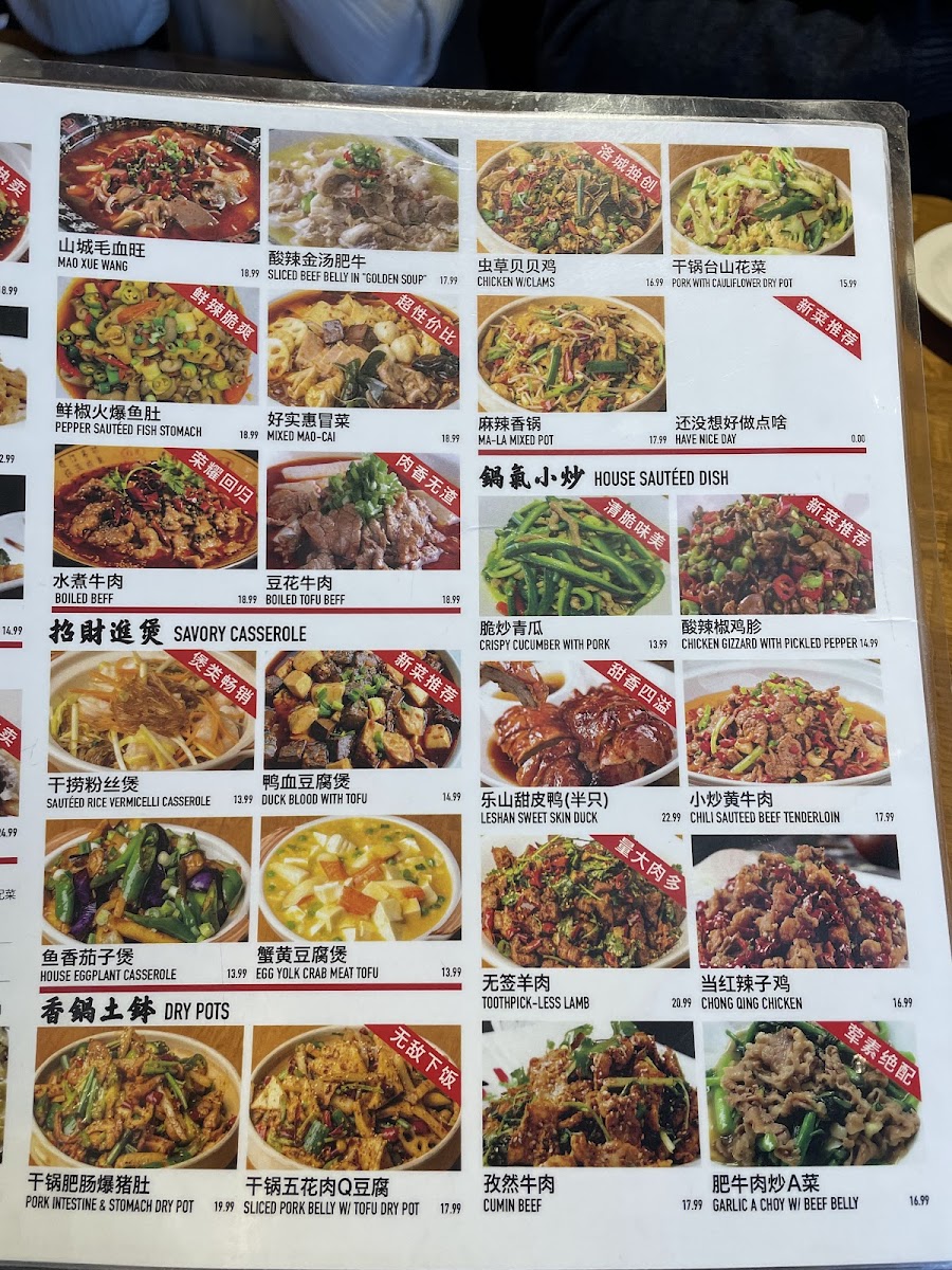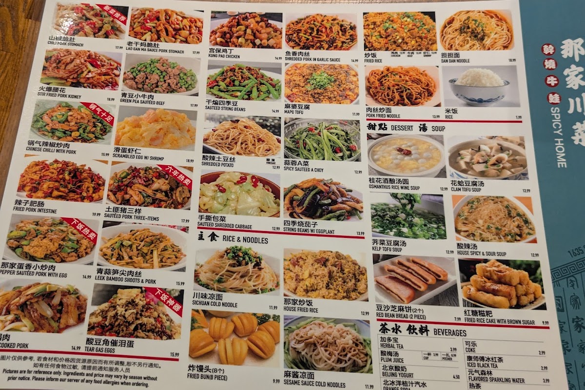 The menu at Spicy Home offers a variety of traditional Sichuan and Chinese dishes organized into several key categories. The main food selections include Dry Pots, featuring options such as Pork Intestine Stomach Dry Pot, Sliced Pork Belly with Tofu Dry Pot, Pork with Cauliflower Dry Pot, and Chili Pepper Beef Belly. These dishes emphasize bold flavors and regional Sichuan cooking techniques.